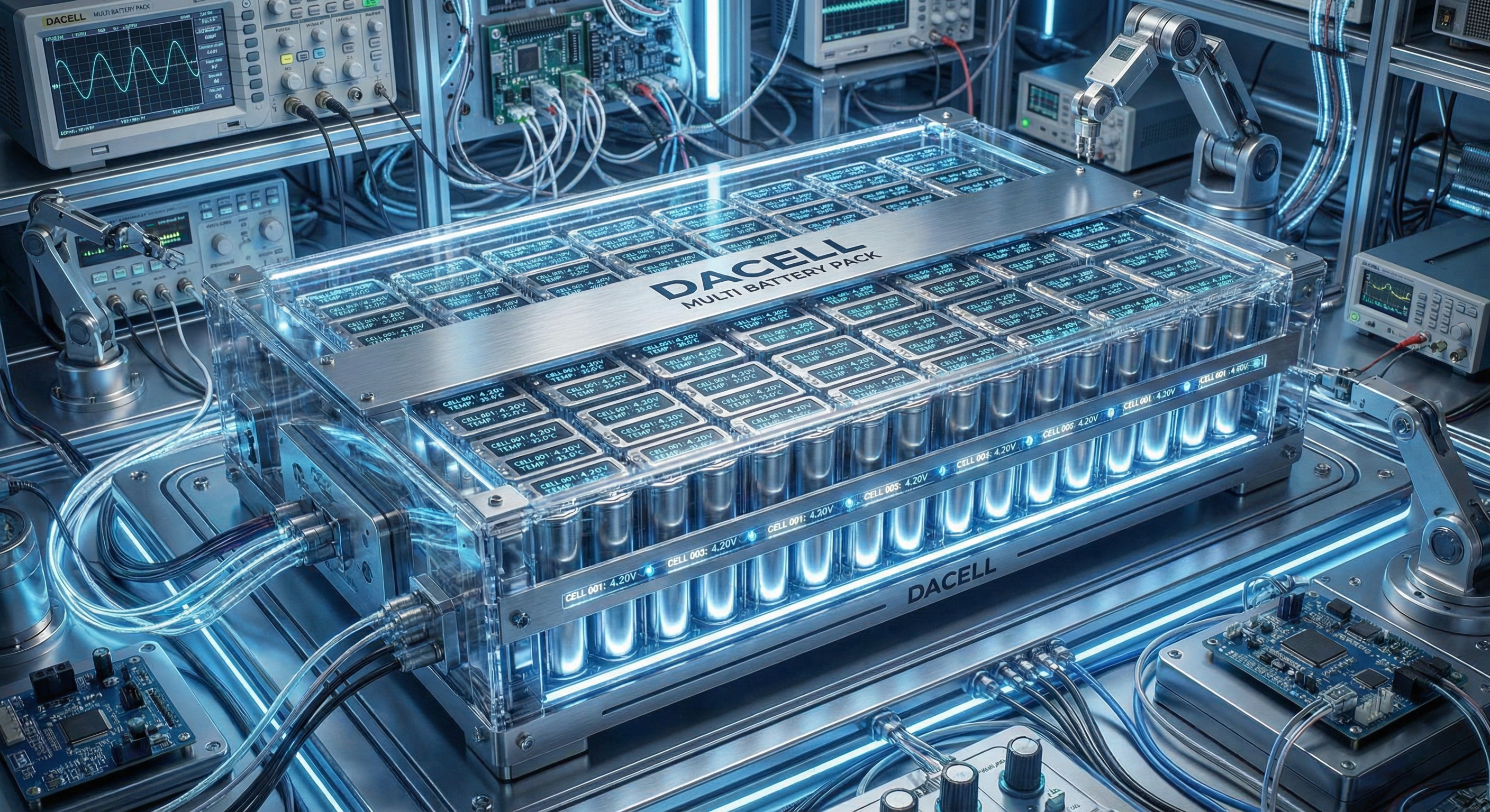 BMS는 멀티 배터리 팩에서 각 셀의 전압과 온도, 팩 전류를 실시간으로 모니터링하고, 충·방전 제어와 셀 밸런싱을 통해 배터리의 안전성, 성능, 수명을 종합적으로 관리합니다.