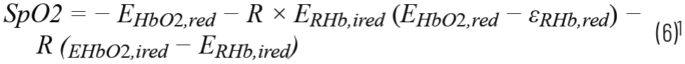 理論上,RoR可以代入以下公式計算SpO 2: