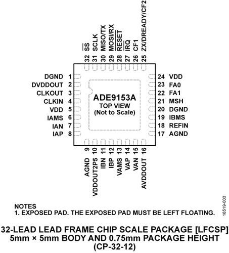 ADE9153A從3.3 V供電,並提供32引腳LFCSP封裝。
