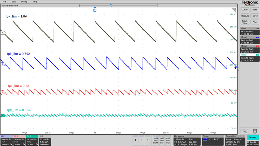 表1. 使用不同峰值電流限制設置的輸出電壓紋波測量結果