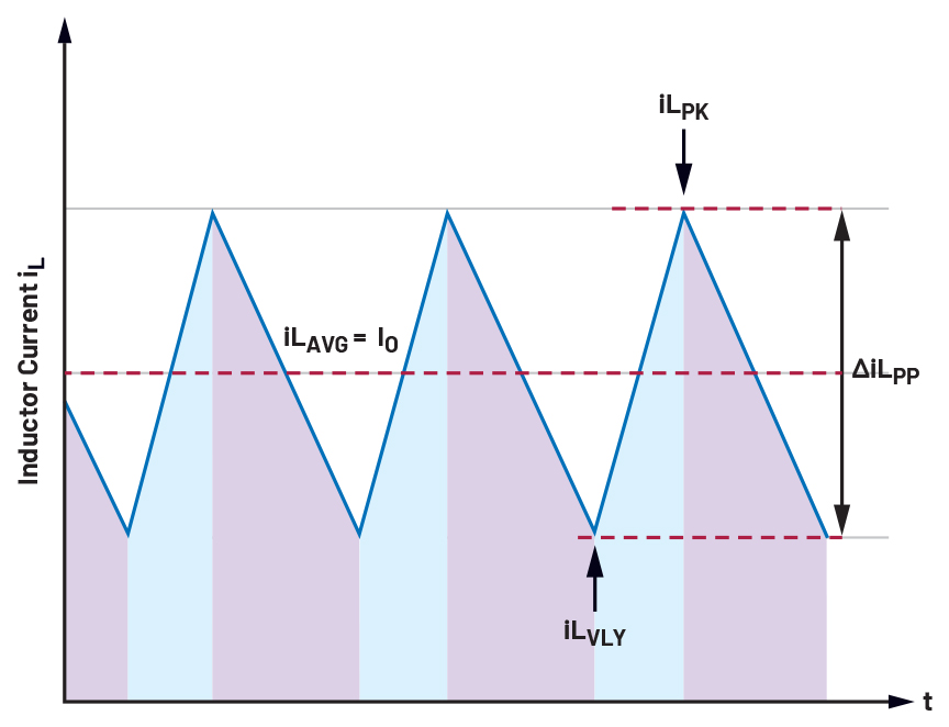 圖3. 電感電流波形。當頂部FET導通時,電感的電流增加,當頂部FET斷開時,電感的電流減少。