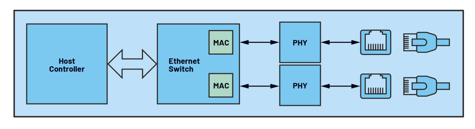PHY 可以是分立元件,也可以整合到乙太網路控制器中。圖 1 顯示了顯示所需乙太網路元件和分立 PHY 的簡化框圖。
