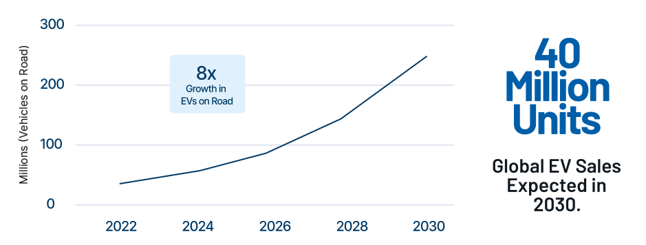 國際能源署在其「新政策情景」中預測,到2030年,全球上路行駛的電動汽車數量將超過1.25億輛。 電動汽車使用8至10年後,其電池包仍能保持原始充電容量的70%至80%,並且仍可繼續在固定式ESS中使用長達十年之久。