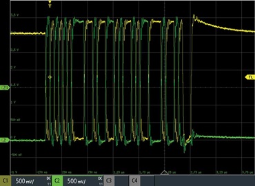 例如,圖 6 是使用示波器擷取的 USB 1.0 通訊訊號。