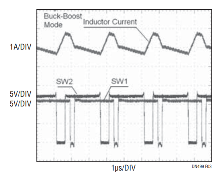 圖 3. 降壓-升壓模式 [VIN = 11V, VOUT = 12V]。