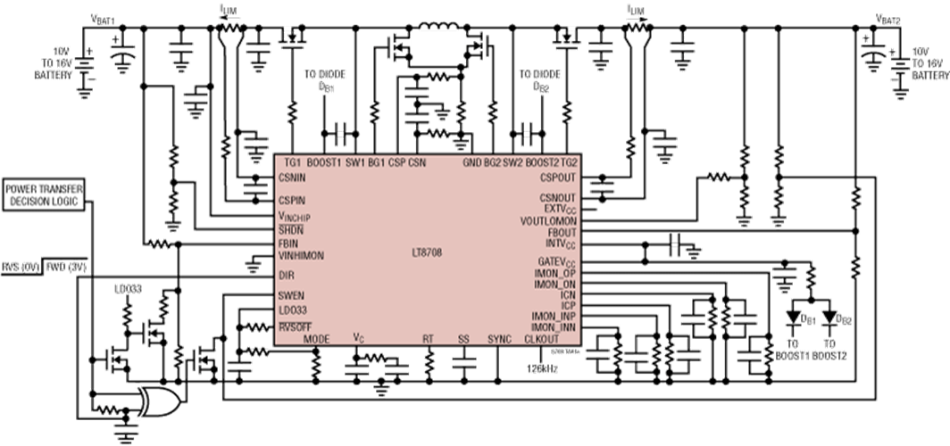 【產品介紹】LT8708(與LT8708-1可並聯)具有雙向功能的80V四開關升降壓DC/DC控制器 98%高效率雙向升降壓型切換開關穩壓控制器:高功率設計,可在兩個相同電壓電池間操作,除了可應用在太陽能,也能自動駕駛汽車、油電混合車、電動車冗餘電源。 自動駕駛 LT8708 後備電源 開關穩壓控制器 油電混合車 電動車冗餘電源 升壓型