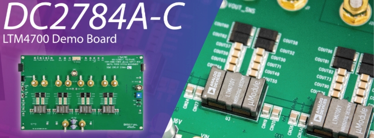【安馳產品DM】DC2784A-C 電源供應器 DC2784A-C 是一款搭載數位電源系統管理功能的高電流、多相式降壓電源 µModule 電源供應器,使用 4 個 LTM4700 元件,總輸出電流可達 400A。 LTM4700 電源供應器 DC2784A-C 安馳產品DM