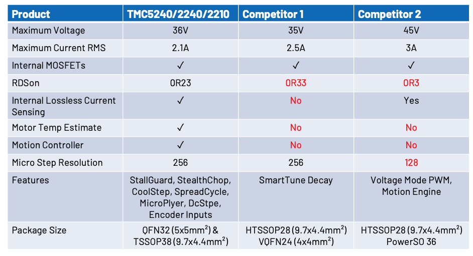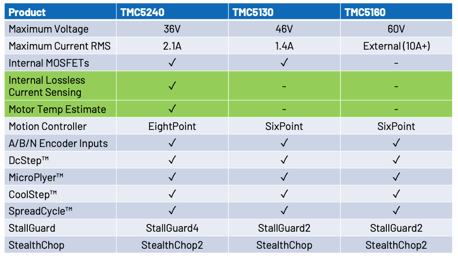 關鍵優勢 TMC5240 & TMC2240 & TMC2210