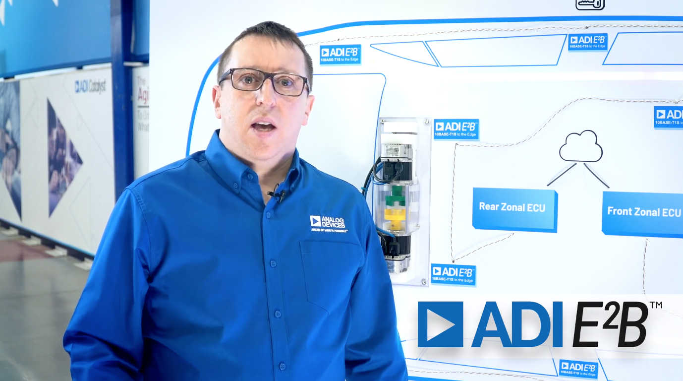 了解 ADI 的 E2B(乙太網到邊緣總線)10BASE-T1S 技術,如何將乙太網連接到邊緣節點,作為汽車區域架構的一部分。 ADI 的低複雜度乙太網技術可實現高度優化的全硬體邊緣節點實施,無需邊緣節點中的微控制器和軟體。 軟體現在可以集中在區域或中央 ECU 中,幫助推出具有個性化、自主性、連接性和電氣化等汽車趨勢的新功能。