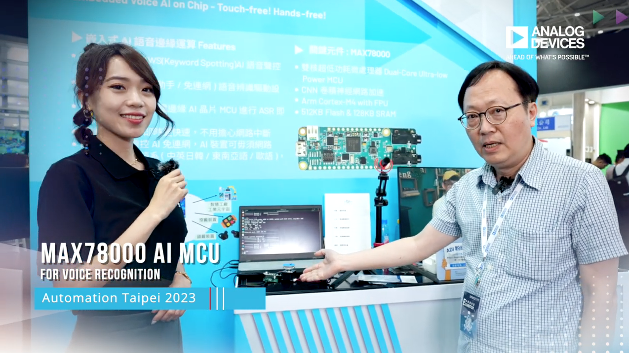 本片為ADI 「台北國際自動化工業大展(Automation Taipei)」方案展示系列。為您介紹AI微控制器MAX78000如何使神經網路在互聯網邊緣端以超低功耗運行,同時不需網路即可進行高精準AI語音辨識。