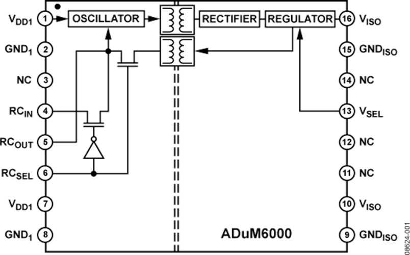 通過使用isoPower®,ADuM6000可增強ADuM5401、ADuM5402、ADuM5403、ADuM5404、ADuM520x和ADuM620x iCoupler的功率輸出水平。isoPower®使用高頻開關元件通過變壓器傳輸電力。在印刷電路板(PCB)布局方面必須特別注意以滿足排放標準。有關板布局建議,請參見AN-0971應用筆記。