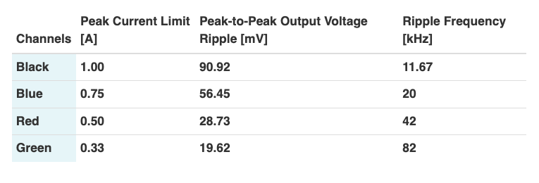 表1. 使用不同峰值電流限制設置的輸出電壓紋波測量結果