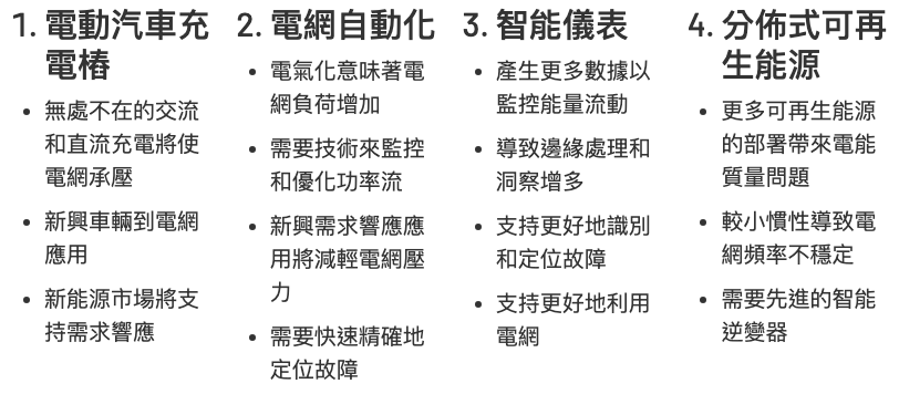 在充電電纜的電網端,ADI提供精密測量、控制和實時信號處理技術。實際上,ADI技術已被用於世界上複雜度非常高的二次變電站,為電網邊緣增加智能,以確保可靠的電力輸送和電網管理10。隨著新的能源和新的負載的加入,電網變得越來越去中心化,噪聲越來越高,我們預期此類設備將成為新的標準。