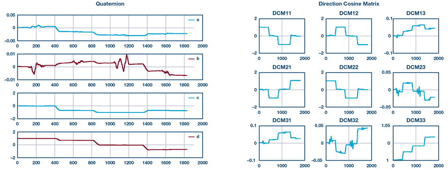 圖14. 四元數格式(左)與DCM格式(右)的姿態。