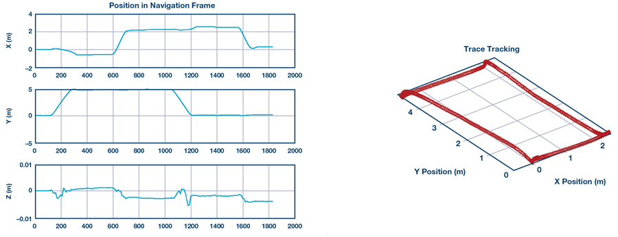 使用SPI端口,我們將ADIS16470評估板和RM3100羅盤評估板連接到ADI公司的ADuCM4050電路板,建構出我們的系統,如圖13所示。ADuCM4050調整資料格式並進行時間同步(因為IMU和羅盤的資料速率不同)。然後使用UART將捕獲的數據傳輸到計算機。所有計算(包括校準、AHRS和DR在MATLAB)均在MATLAB ®中執行。