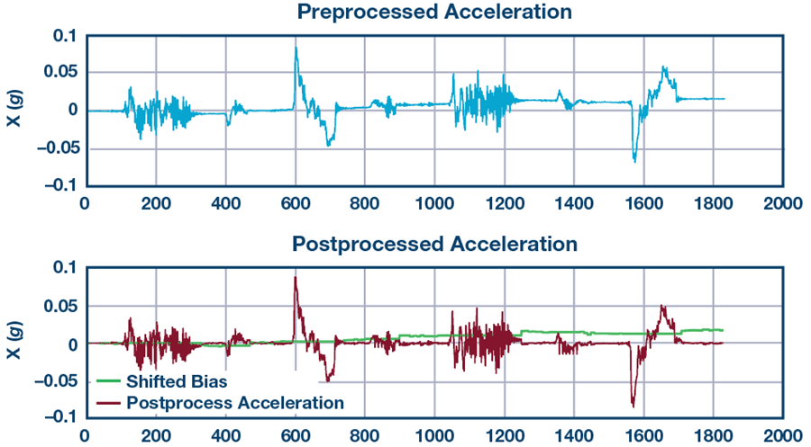 Figure圖11. 基線漂移消除之前(上)和之後(下)的加速度。