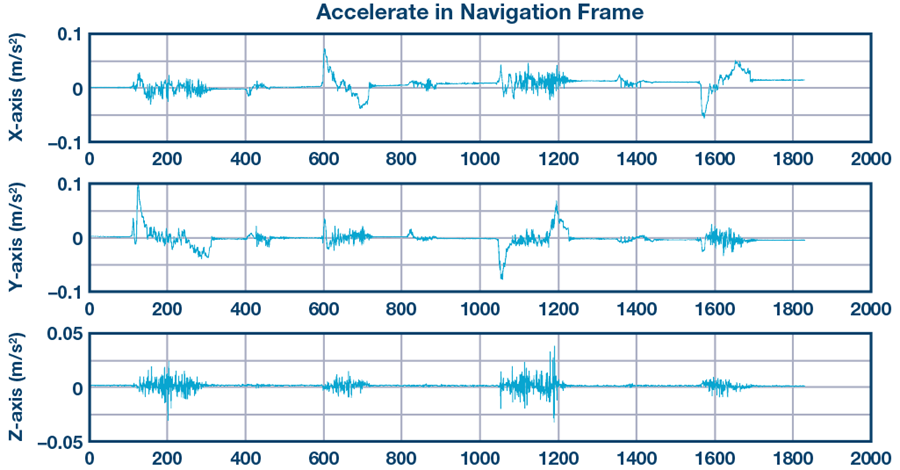 圖8. 導航座標系中三個方向的加速度。