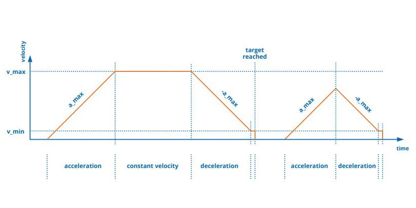 驅動負載最簡單的方法是使用恆定速度。由於這種速度模式沒有定義的加速階段,因此對於立即恆定速度來說,理論加速度值是無限的。然而,系統和負載都具有時間有限的行為,必須加速到所需的速度。因此,根據系統和負載的不同,加速時間延遲不穩定。