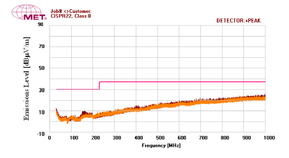 圖 5. 使用 12 吋 MAX98360 的 EMI 效能 帶狀線負載。