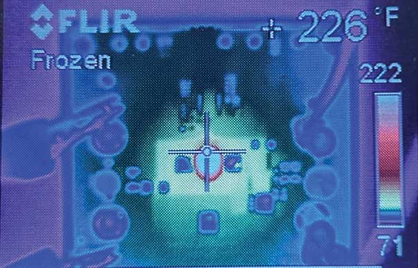 此外,由於電流波動大,電感會產生迅速的滯後損耗,導致電感過熱,如圖6所示,以及聽得到的噪音。這種額外的熱量可能會損壞附近的其他元件,尤其是調節器晶片本身。