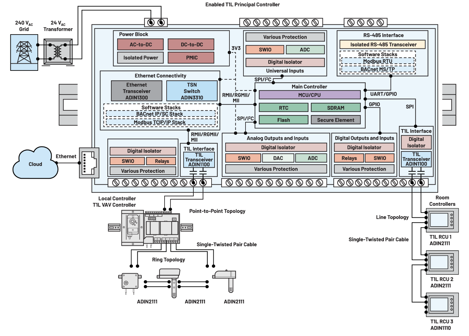 圖 1. 支援 T1L 的建築控制器。