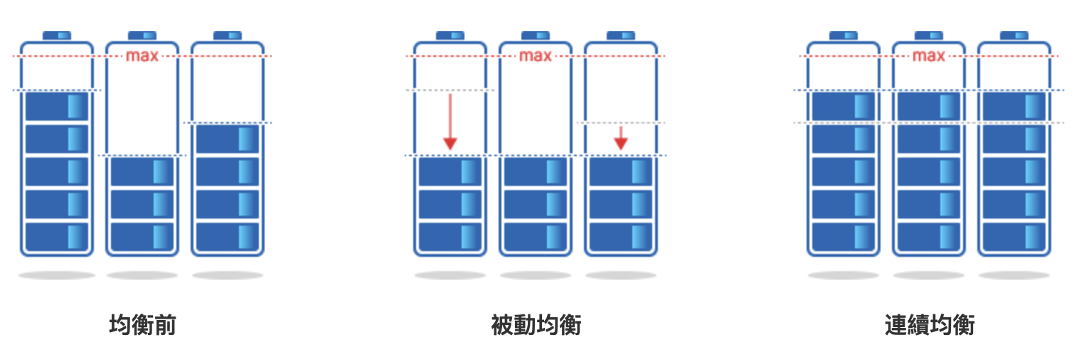 電池被動均衡與連續均衡