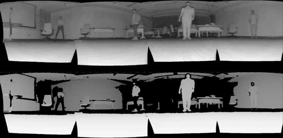 圖 9.具有 278° FoV 的拼接 IR 和深度圖像。