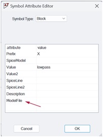 接下來,將前綴更改為 X,這是將 . SUBCKT 模型連接到符號時的必要步驟。 這是一個額外步驟,匯入 . MODEL指令時並不需要。
