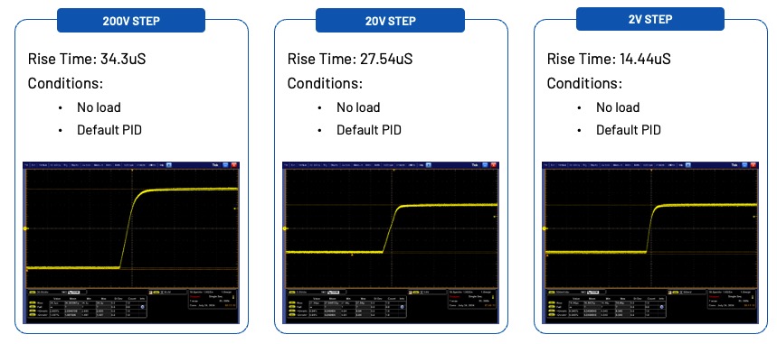 不同的階躍響應可以透過 PID 來控制上升時間 。可以看出整個曲線沒有過衝、乾淨且快速 。