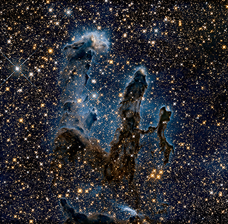 紅外輻射具有更長的波長,可以穿透緻密的分子云,其塵埃阻擋了可見光天文儀器可探測到的大部分光線。原始宇宙第一次以前所未有的分辨率和清晰度出現。