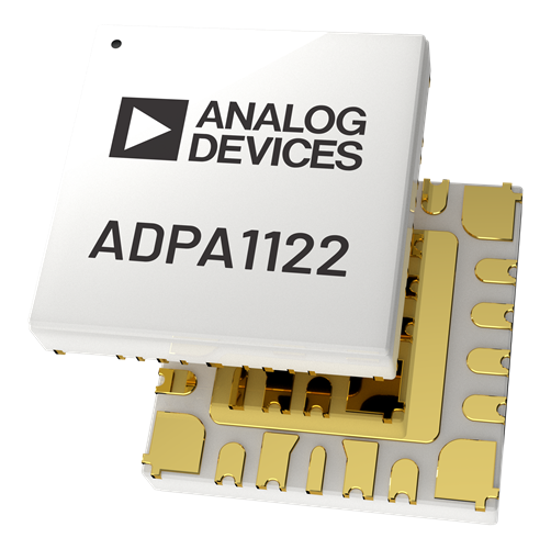 ADPA1122 是一款氮化鎵(GaN) 功率放大器,在8.2GHz 至11.8Ghz 頻率範圍內,可提供43dBm (20W) 功率和高於43% 的功率附加效率(PAE)。ADPA1122 在9.6GHz 至11GHz 範圍內提供±0.5 dB 的增益平坦度。