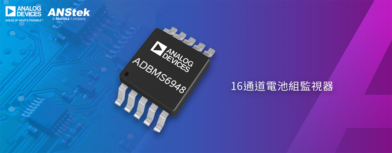 ADBMS6948是一款多單元電池監控器,可測量多達16個串聯的電池單元,在整個溫度範圍內具有較高的測量精度。