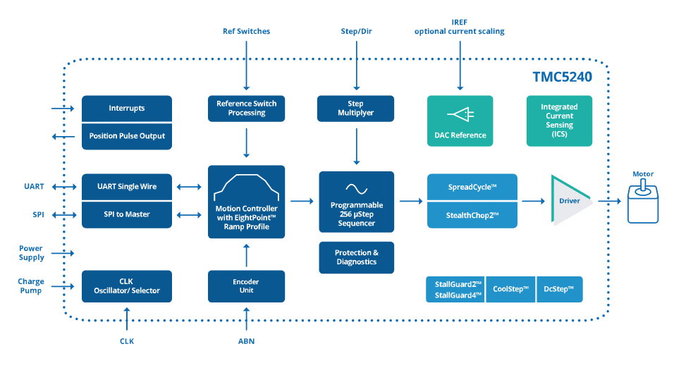 這些優勢使`TMC5240成為一個高效、緊湊且功能豐富的步進馬達驅動器解決方案。