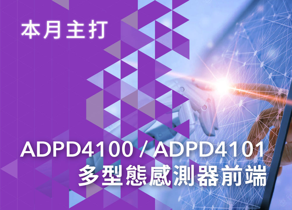 【產品介紹】ADPD4100 / ADPD4101多型態感測器前端 ADPD4100 / ADPD4101這兩個產品的唯一差異是 ADPD4100 具有 SPI 介面,而ADPD4101 具有的是 I²C 介面。皆是完整的多型態感測器前端,可激發多達8個發光二極體(LED),並使用高達 8 個不同的電流輸入來測量回傳訊號。提供12個時槽,每個取樣期間可進行12次獨立的測量。 感測器 ADPD4100 ADPD4101 心電圖 I2C SPI LED 可穿戴