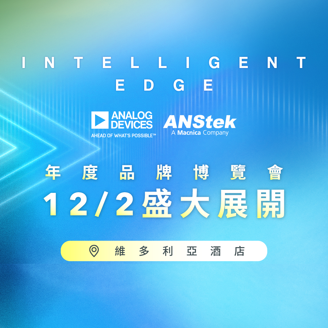 美商亞德諾半導體(Analog Devices Inc., ADI)與安馳科技等代理商,將於12月2日下午1點到5點,假台北維多麗亞酒店舉辦2022「Intelligent Edge」品牌博覽會,本次博覽會分別以Sensor Edge、Insight Edge、Cyber Edge以及Power等四大主題向合作夥伴進行現場演示,期待您的到訪,深入了解ADI 針對次世代各領域的研發成果,並邀請您攜手與ADI 一起邁向未來嶄新生活。