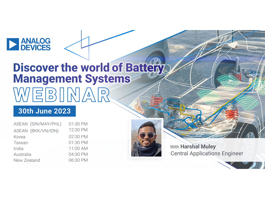 ADI公司即將舉辦線上研討會,由我們內部專家Harshal Muley主講,他是(Analog Devices)的核心應用工程師,您將有機會探索電池管理系統(BMS)的世界。